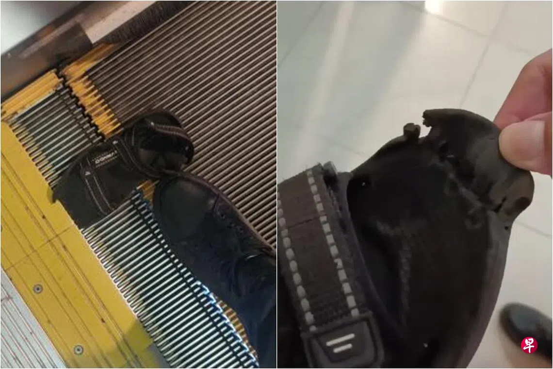 黄先生说,他看到女儿脚上穿的凉鞋被卡在手扶梯的缝隙中。
