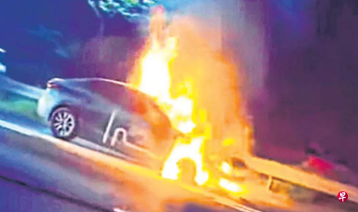 《新明日报》早前报道,一辆BlueSG共享汽车星期一(2月17日)在武吉知马快速公路(BKE)上起火狂烧,一人在事件中因轻微烧伤被送院。