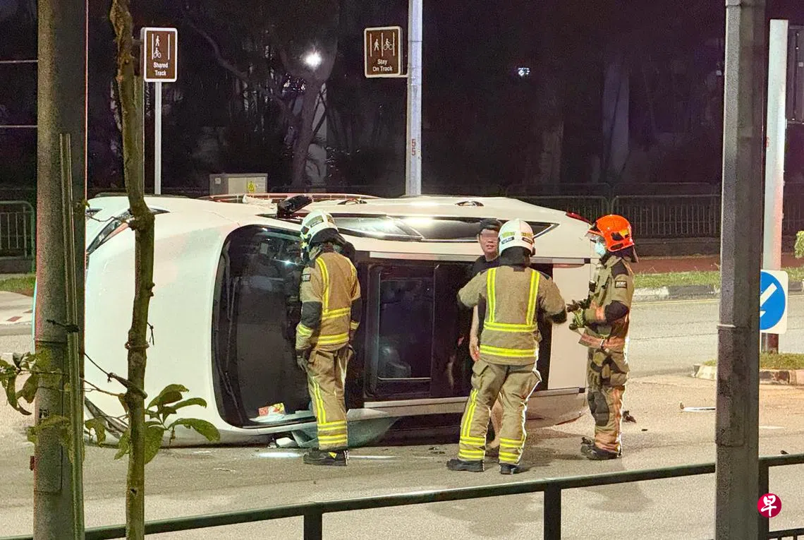 热心读者通知《新明日报》,指在上述地点看到一辆白色汽车侧翻在路口,当时除了有救护车在现场,还有几名消防员在汽车四周查看和救援。虽然已过午夜时分,也有几名路人驻足围观。