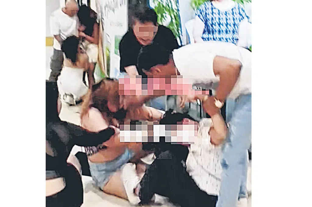 视频中可见,不少人驻足围观,走道上还有不少破碎的酒瓶,场面一片狼藉。