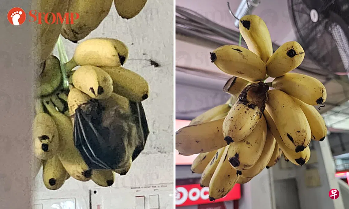 有公众向STOMP反馈,指上月22日午夜12时15分许,有一只蝙蝠在宏茂桥10道第407组屋的水果摊啃食挂在外面的一串香蕉。