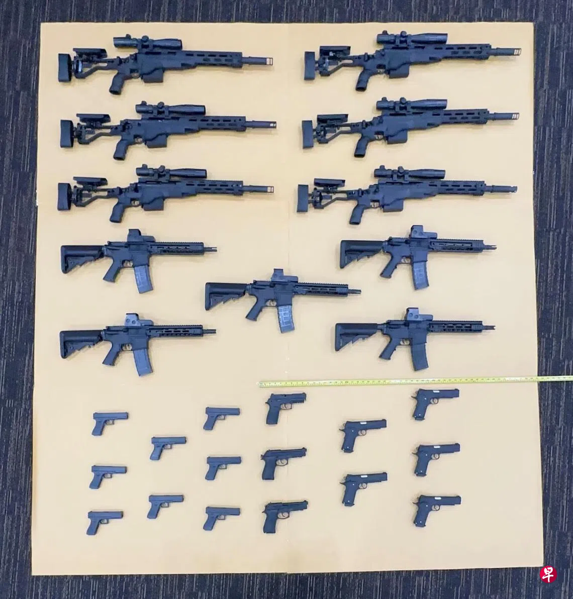 警方说,2023年5月11日,警方接获有人在电子商务平台上销售仿制枪械的消息。经后续调查,警方确认卖家的身份,并于2023年5月26日突击卖家位于跑马埔巷的住处。