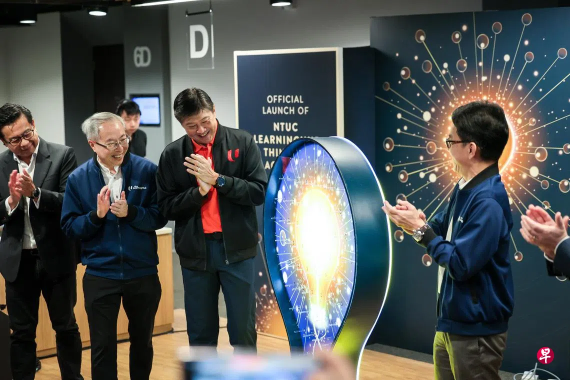 全国职工总会秘书长黄志明星期四(3月6日)为职总恒习思维学院(NTUC LHUB Thinking Academy)启幕。学院将为本地专业人士、经理及执行员(PMEs),提供批判性思维、设计思维和创造性思维等领域的培训,让他们在GenAI时代更好地胜任工作。