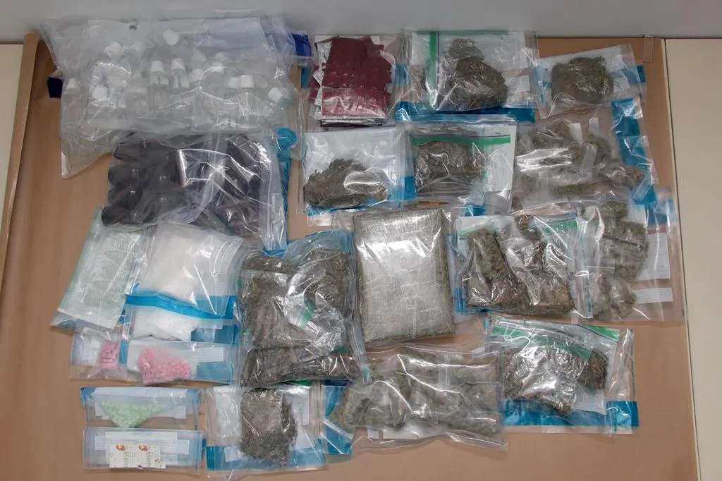 在星期二深夜,肃毒局人员在加基武吉3路一个商业建筑的停车场逮捕一名27岁女子和一名33岁男子。男子随后被押到建筑内的一个单位,当局从中搜出约4.99公斤大麻、279克克他命、222克冰毒、115克爱他死,以及250枚麦角酸二乙酰胺(简称LSD)邮票。