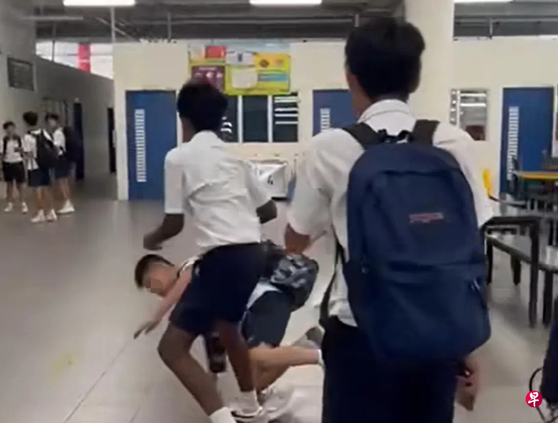 教育部星期一(3月3日)已发声明,还原发生在蒙福中学的事件。视频中遭同学推搡的中一生,稍早前在教室内与两名同学打架,之后被老师发现制止。下课后,两名同学尾随他到楼梯口和食堂,双方又再爆发冲突。
