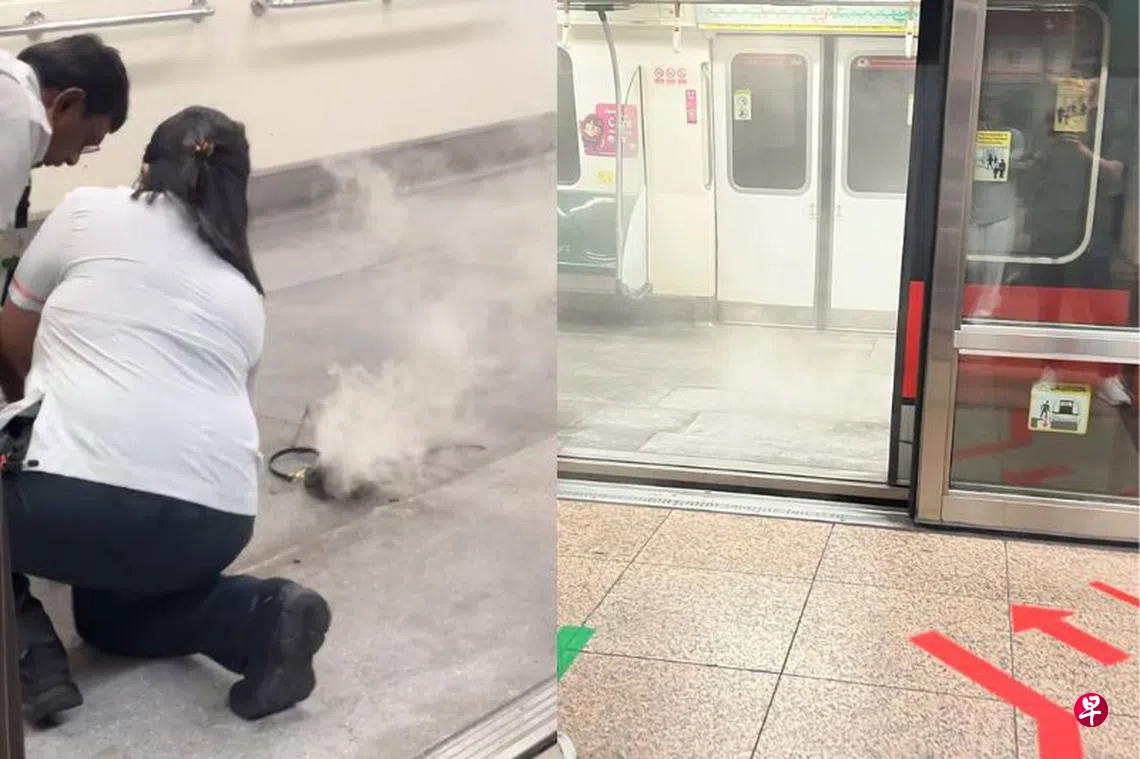 根据社交媒体流传的视频,星期五(3月7日)傍晚,的莱佛士坊地铁站内冒白烟,前往巴西立站的月台上挤满了等车人群。视频拍摄者称,列车服务延误约五到十分钟。