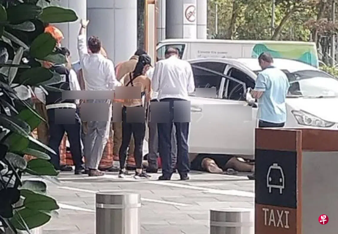 根据网络上流传的现场照片,一辆白色汽车停在载客点,身穿黑色短裤的男子倒卧在一旁,周围聚集了不少公众。