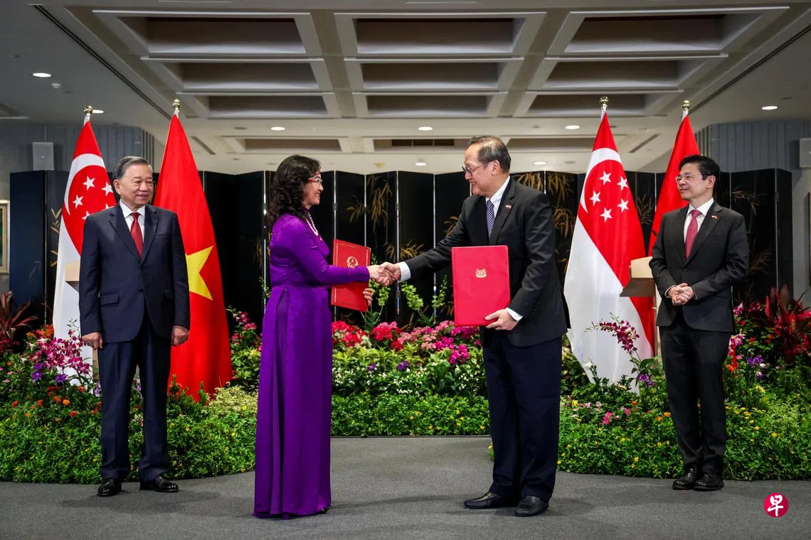人力部长兼贸工部第二部长陈诗龙医生和越南工贸部副部长阮黄龙,星期三(3月12日)在黄循财总理和来访的越共中央总书记苏林见证下,批准了这份联合报告。