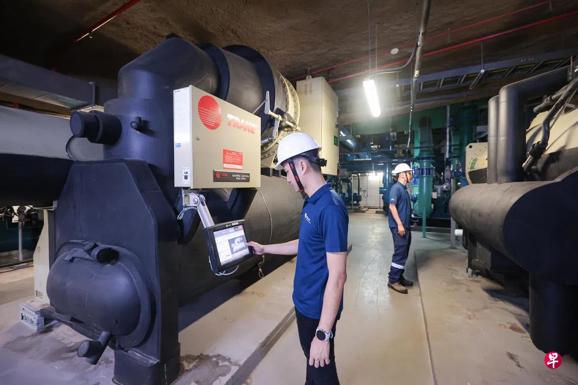 其中,世纪广场、淡滨尼天地和Tampines1,将是区域供冷网的三大供冷站。新能源在这三处供冷站加装泵设备,使制冷机提供的冷冻水不仅满足自身建筑需求,还可通过新增泵设备和长达1.3公里的地下管道输送到其他建筑。