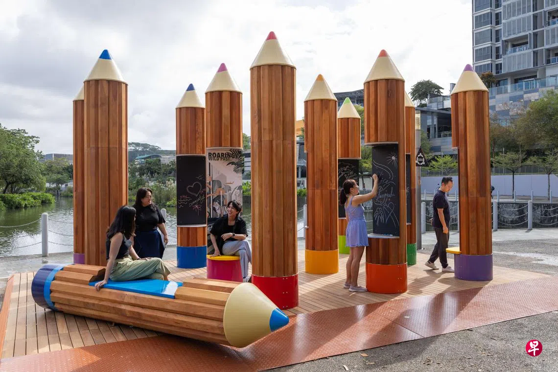 榜鹅水滨一带伫立着11支比人还高的巨型“铅笔”艺术装置,另有一支“铅笔”横躺着供公众歇息,为社区增添更多活力和趣味。