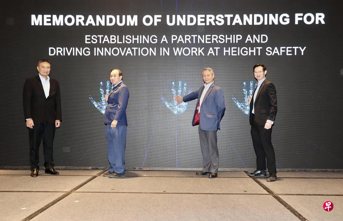 工作场所安全与卫生理事会星期二(3月18日)在新加坡博览中心,与新加坡科技设计大学和新加坡社科大学分别签订合作备忘录,提高高空作业安全。