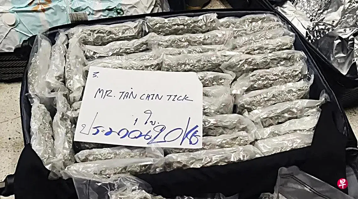 其中来自马来西亚的47岁男子陈振添(译音,Tan Chin Tick),被指携带一个装有22.8公斤真空密封大麻干花的行李箱前往新加坡。