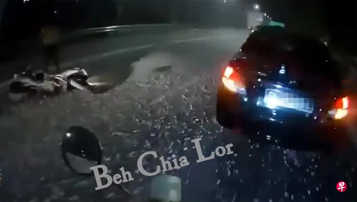 根据社交媒体流传的电单车行车记录器画面,事发三条车道散落大面积碎石,造成一辆电单车翻覆,但骑士似乎并无大碍;另一辆从后方驶来的电单车则来不及减速,撞上碎石后往右重重摔倒。其他车辆见状立刻开启双闪灯,并持续鸣笛警示其他公路使用者。