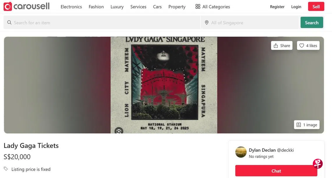 国际巨星女神卡卡(Lady Gaga)演唱会的门票曾一度在网上炒至3万元,新加坡消费者协会呼吁公众只向获授权的卖家购票,以避免上当受骗,花高价购买无效门票。