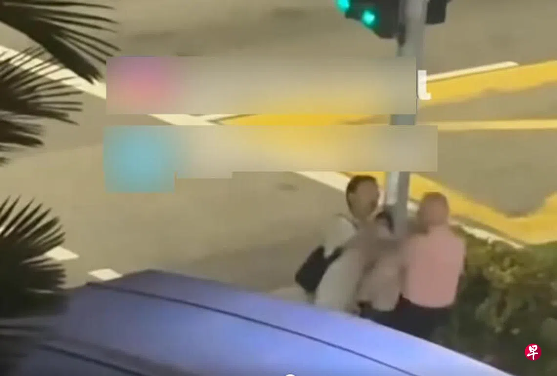 根据网上流传的视频,一名老汉站在交通灯旁,另一名年纪较轻的男子则蹲在附近。