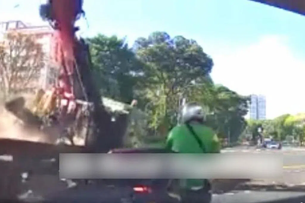 新加坡人民党前主席乔立盟(Jose Raymond)在脸书贴出事故现场画面,指自己清晨看到戏剧性的一幕,倒下的货物是一个巨型圆柱塔。