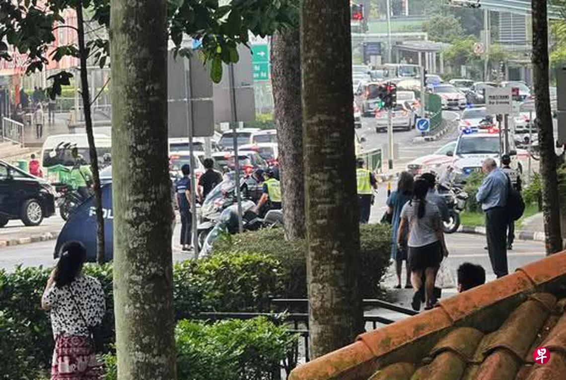 根据网民Apizentino Chikolatte上载的照片,往联邦道方向的荷兰道(Holland Avenue)路段上有至少三辆交通警察的警车,路中央也可见一个蓝色帐篷。