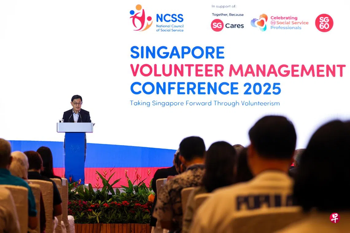由国家福利理事会主办的新加坡义工管理大会星期五(3月28日)在滨海湾金沙会议展览中心举行,吸引约600人到现场参与活动。副总理王瑞杰和文化、社区及青年部兼社会及家庭发展部高级政务次长蔡瑞隆也一同出席活动。