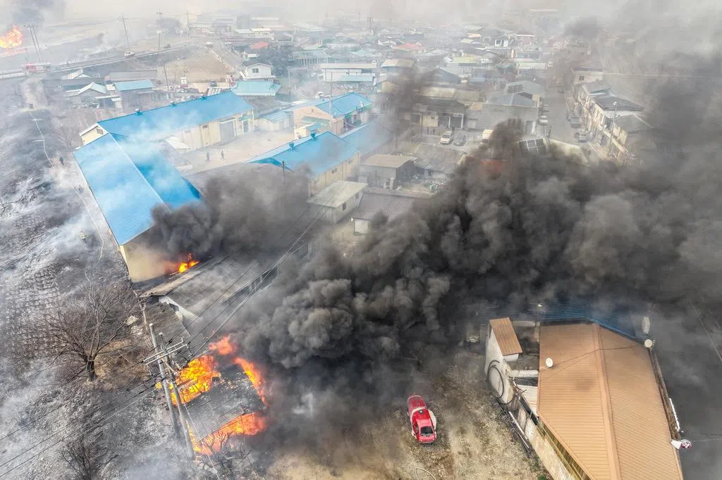 庆尚北道义城郡于上星期六(3月22日)发生山火,据当地媒体报道,天气干燥加上强风来势汹汹,山火迅速向东蔓延。韩国当局也发布了山林火灾三级警报。