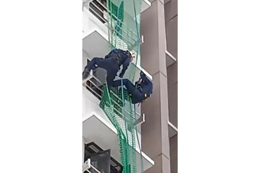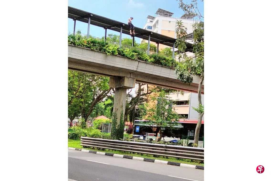 林姓清洁工(62岁)目睹了解救过程。“一名民防人员先从天桥侧面爬上天桥屋顶,趁女子不注意时,上前稳住了她,并把她拖到靠近天桥屋顶末端的位置。”