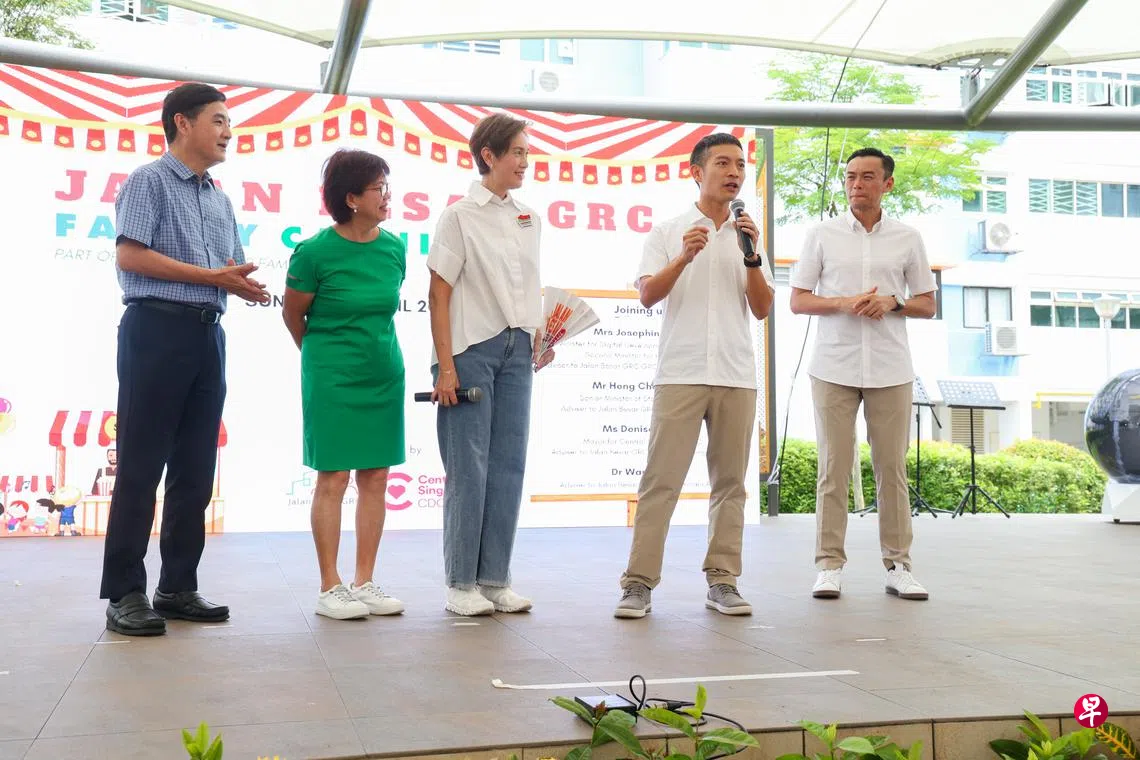 罗守恩与惹兰勿刹集选区议员,数码发展及新闻部长兼内政部第二部长杨莉明、国防部高级政务部长王志豪、中区市长潘丽萍以及文礼佳博士,星期天在惹兰勿刹集选区的“家庭嘉年华”活动与居民互动。