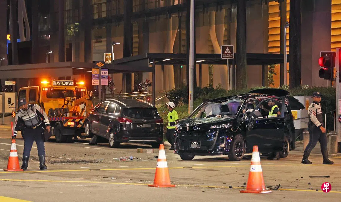 中央商业区(CBD)发生两车相撞,其中一车翻覆,四人送院。