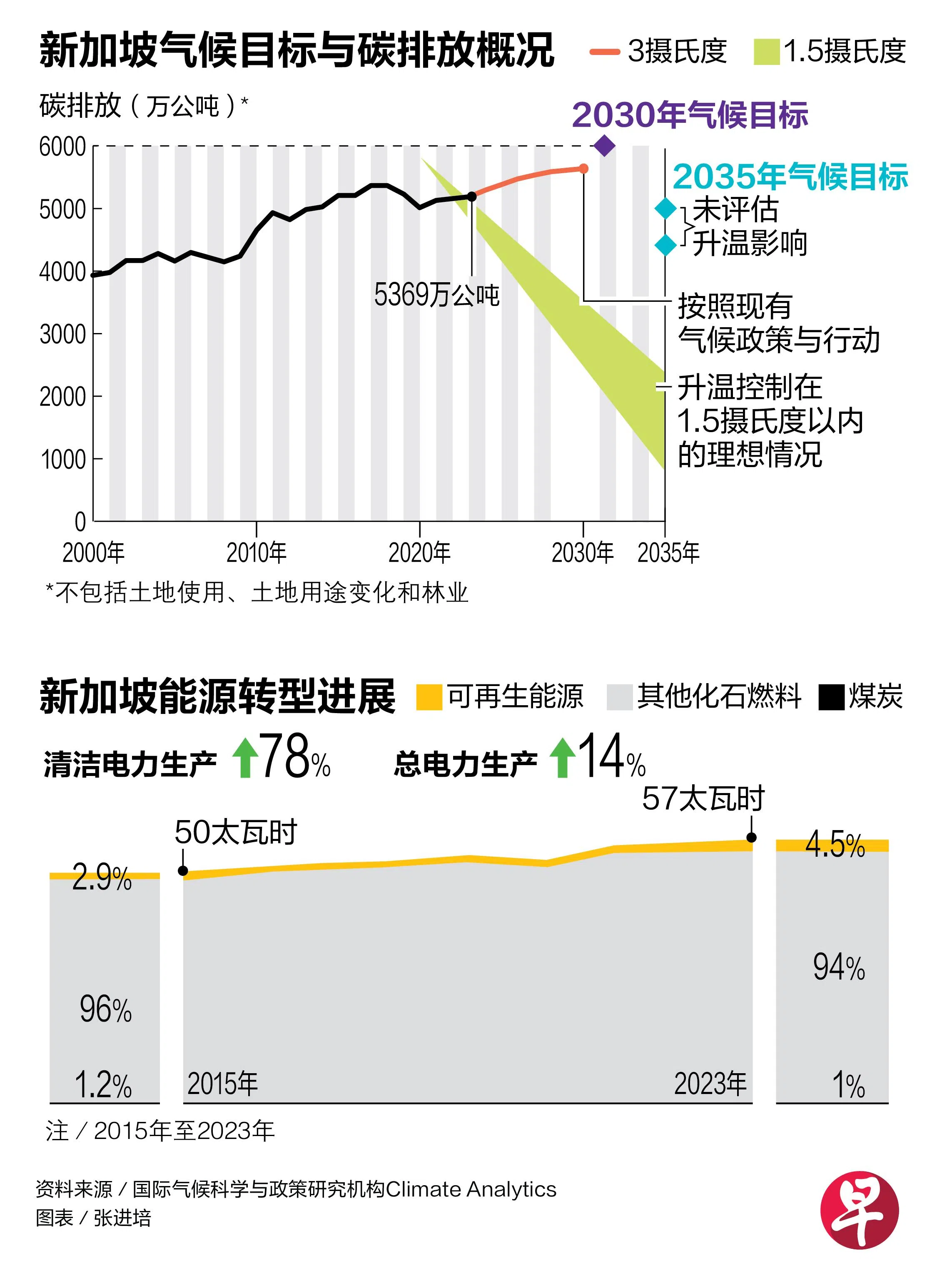 我国早前定下更严格的减排目标,到2035年要把碳排放削减至介于4500万公吨至5000万公吨。达斯说:“这个减排水平不足以实现1.5摄氏度控目标,模型估算新加坡需把2035年碳排削减至2640万公吨。”