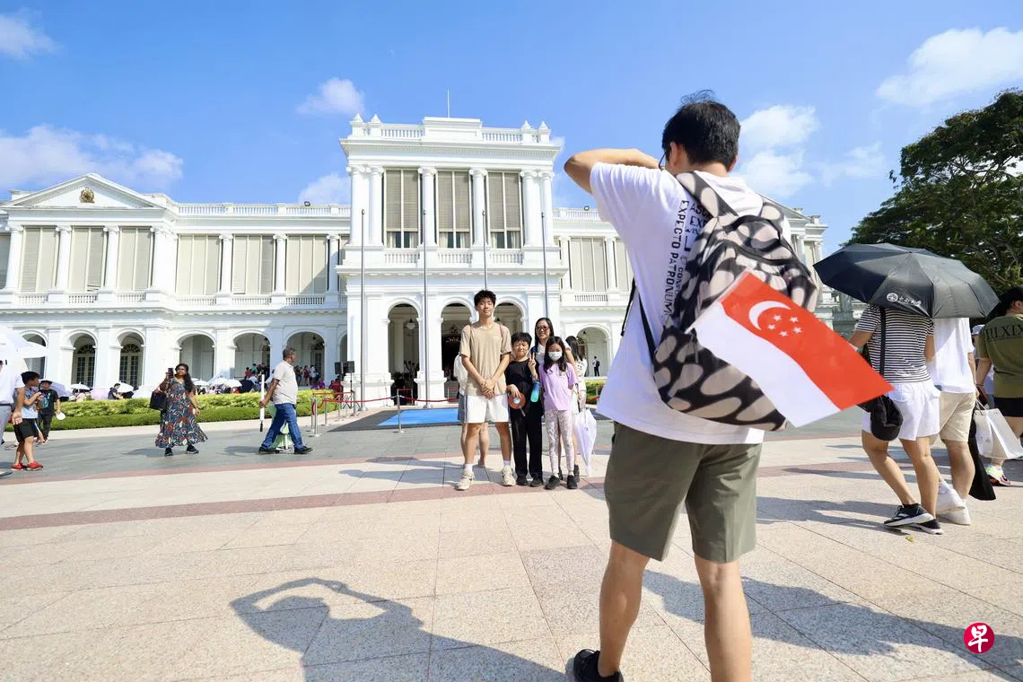 早上晴转多云的天气为总统府带来不少访客。谭熹怀 (43岁,财政)带着41岁妻子和八岁女儿,上午8时左右就抵达总统府正门。