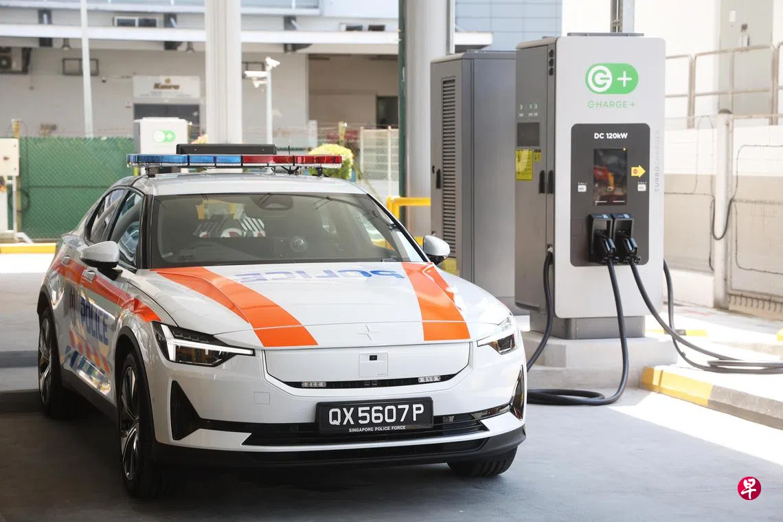 新加坡警察部队答复《联合早报》询问时透露,每一辆极星2出勤前都会预先把电充满,确保执勤期间无须额外充电。