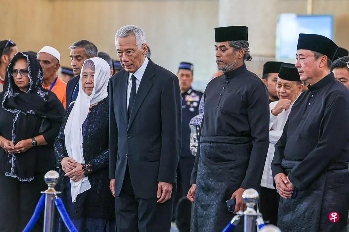 李显龙资政赴吉隆坡 出席阿都拉国葬仪式国务资政李显龙(左三)与夫人何晶(左二)星期二(4月15日)到吉隆坡,出席马来西亚前首相阿都拉的国葬仪式。 (马新社)国务资政李显龙星期二(4月15日)前往吉隆坡,出席马来西亚前首相阿都拉的国葬仪式。总理公署星期二发文告说,资政夫人何晶与我国外交部官员将随行。 马国第五任首相阿都拉星期一(14日)晚上在吉隆坡国家心脏中心去世,享年85岁。 延伸阅读 马国第五任首相阿都拉去世 享年85岁 黄总理:阿都拉为新马卓越关系奠定牢固基础 马来西亚李显龙上一篇大东方控股主席不愿揣测公司潜在除牌可能性下一篇星期二可关注股票购买此文章