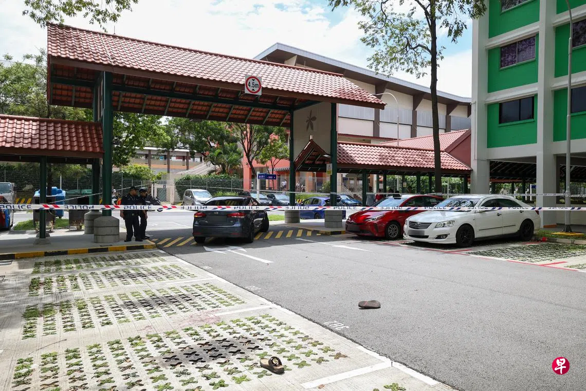 《联合早报》记者星期四下午约2时抵达现场,数名警员还在一辆黑色马赛地汽车周边来回调查,车子挡风镜碎裂。而在不远处,警方则拉起封锁线,封锁范围里有一双拖鞋遗落地上,地板也留下血迹。
