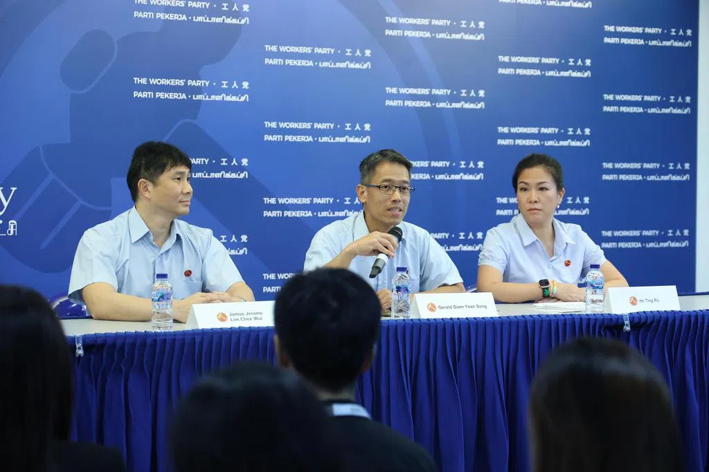 工人党秘书长毕丹星和主席林瑞莲,在记者会上介绍四个准候选人。
