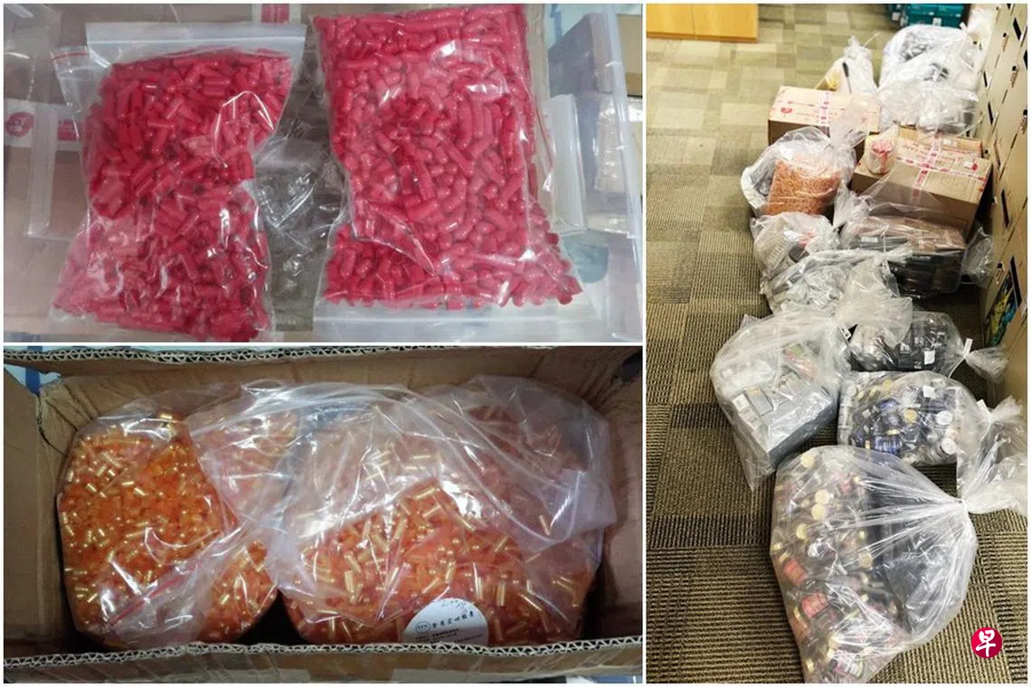 卫生科学局突击一个组屋单位,起获超过1万8000件壮阳药和造药设备、30支电子烟及零件,黑市价约为5万1000元。