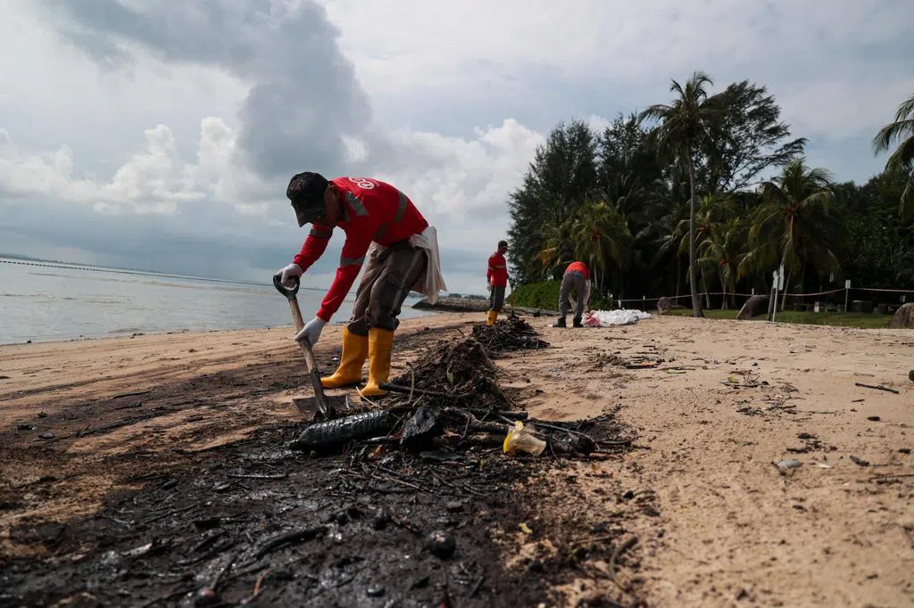 永续发展与环境部长傅海燕4月4日发脸书贴文说,马来西亚柔佛州的浪沙码头发生漏油事故后,柔佛海峡东部、乌敏岛东北部海岸出现油污。部分樟宜海滩和白沙海滩拉起围栏,禁止公众进入,以进行油污清理工作。