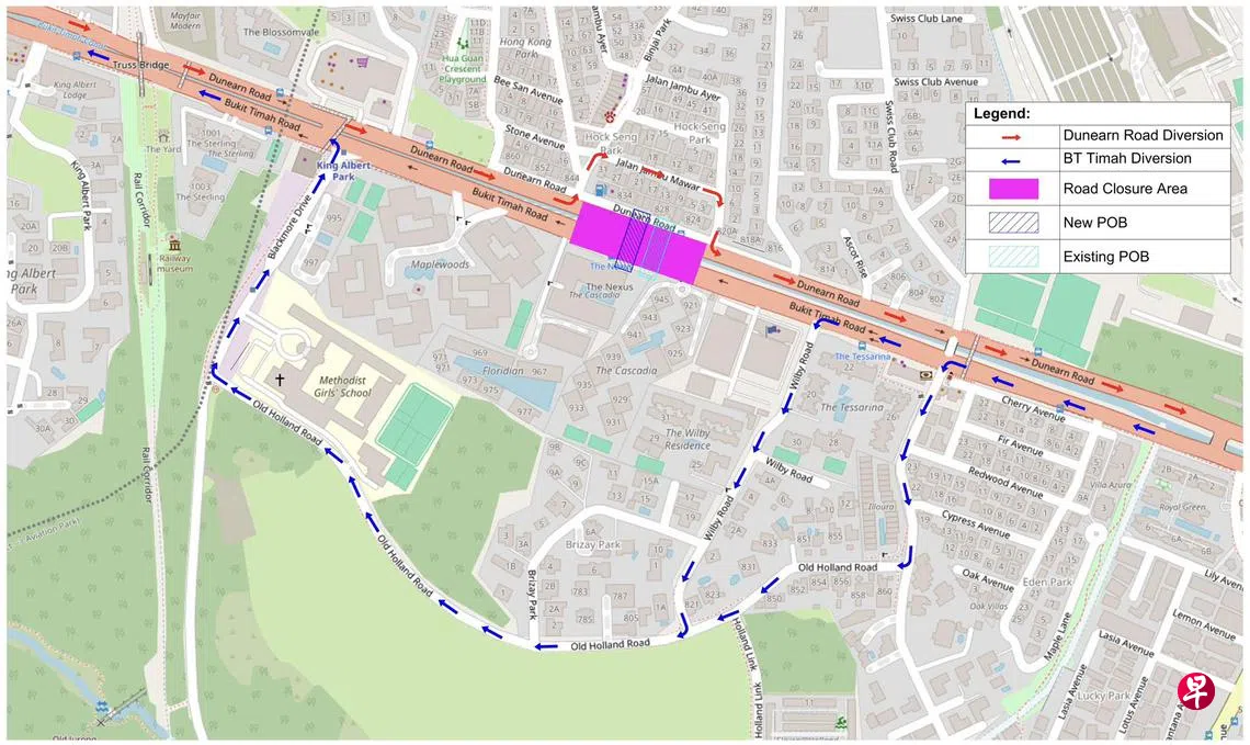 公用事业局星期四(4月24日)更新脸书发文说,武吉知马路(从Cascadia公寓到NEXUS公寓)及杜尼安路(从明才园至惹兰占武亚逸)的部分路段,原定在星期五(25日)和星期六(26日),从深夜12时30分至凌晨6时暂时关闭。