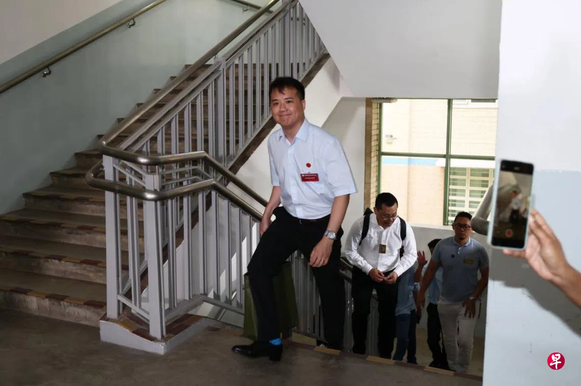 工人党新面孔刘宇扬(Andre Low)走入提名登记处。 (陈渊庄摄)