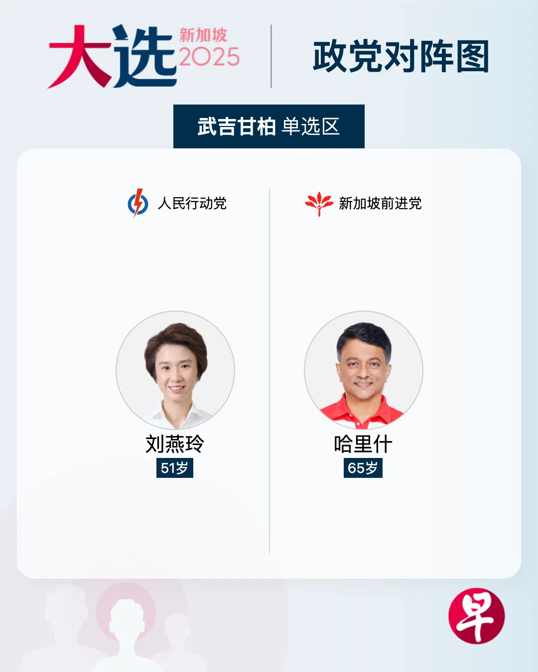 武吉甘柏单选区则确定由人民行动党刘燕玲确定对垒新加坡民主党哈里什。