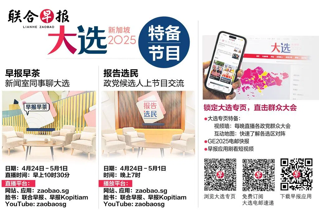 【GE2025】新加坡大选即时报道随着提名程序结束,各政党正式展开九天竞选活动,争取选民支持。本届大选投票日定在5月3日。 延伸阅读 《联合早报》推出每日大选特备节目《早报早茶》和《报告选民》 2025年新加坡大选上一篇丰树物流信托第四季可派发收入减少10%至9906万元下一篇吉宝有限公司首季盈利走高25%购买此文章