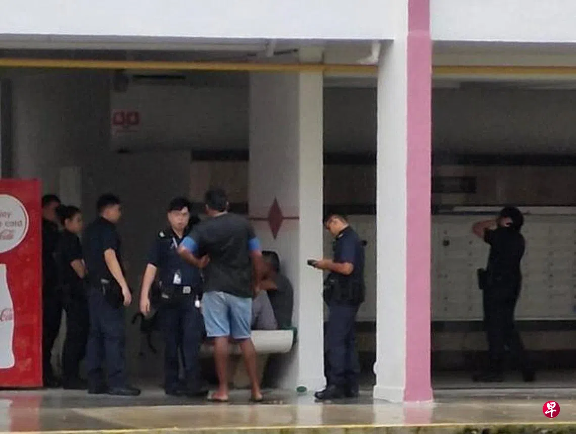公众林先生(41岁,服务员)联系《新明日报》,指在上述地点看到数辆警车,大批警员在组屋底层围着数名男子。林先生随后又看到其中一名男子被带上警车,其余警员则留在现场继续调查。
