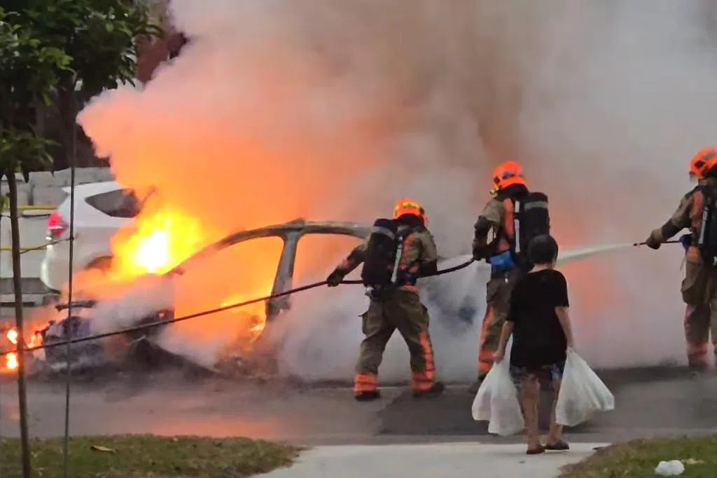 新加坡民防部队答复《联合早报》询问时说,火患涉及两辆车,消防员到场后使用一支水枪和一个压缩空气泡沫背包将火势扑灭。一名受轻伤者在经过救护人员评估后,拒绝送院治疗。