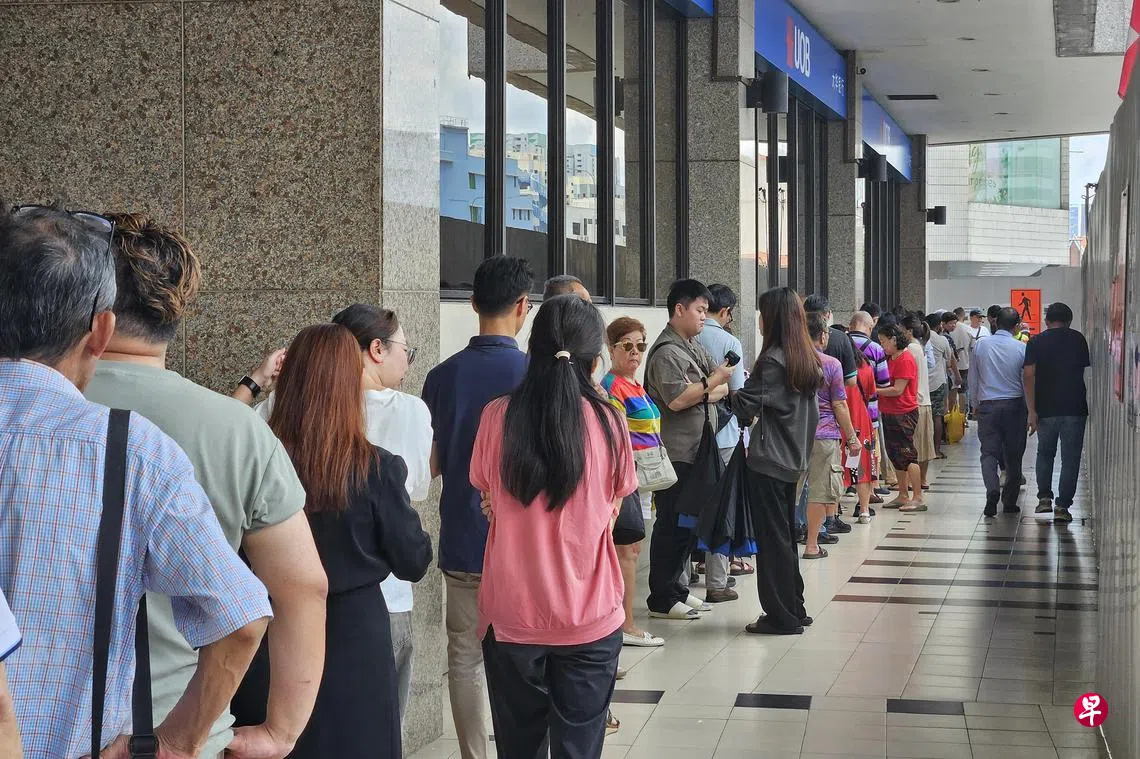 记者星期一中午走访派出最多头奖之一的福禄寿大厦的Delisia Agency Pte Ltd投注站,发现人龙从地下投注站一直排到一楼的另一个入口处,至少上百人排队,人龙近百米,且人数持续增加。
