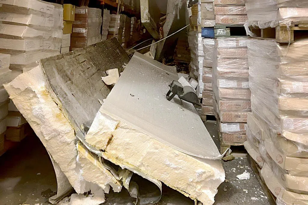 乌节购物中心进出口处的天花板不知何故突然剥落,混凝土碎块散落一地。