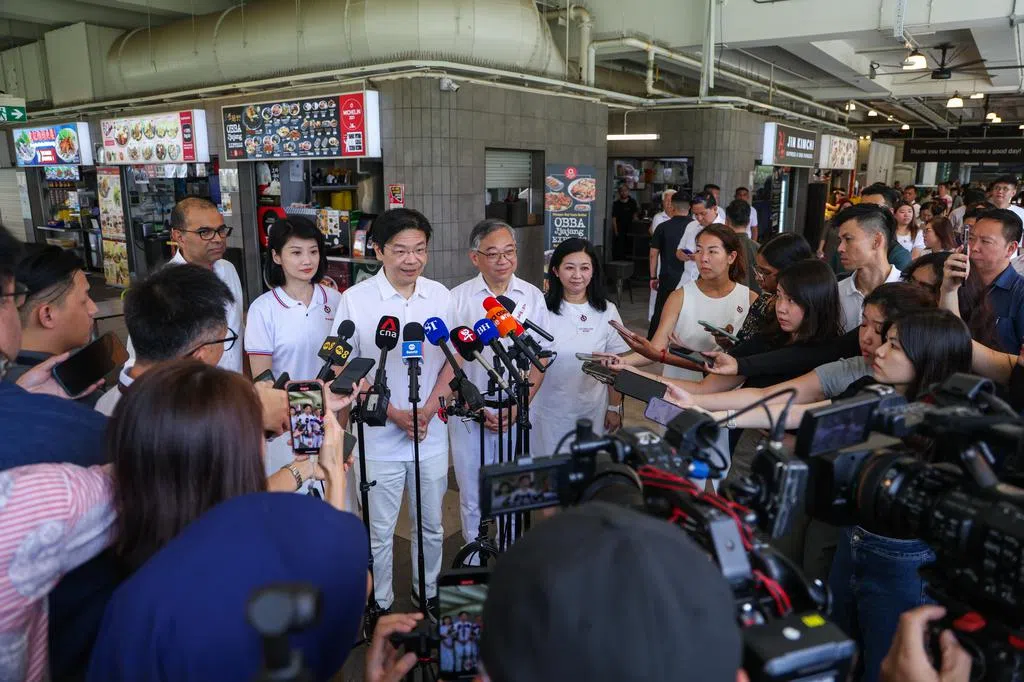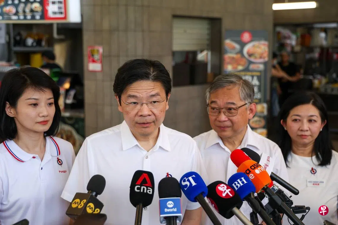 黄总理星期二(4月29日)走访榜鹅综合社区中心(One Punggol)的小贩中心,为颜金勇领军的行动党榜鹅集选区团队助阵。