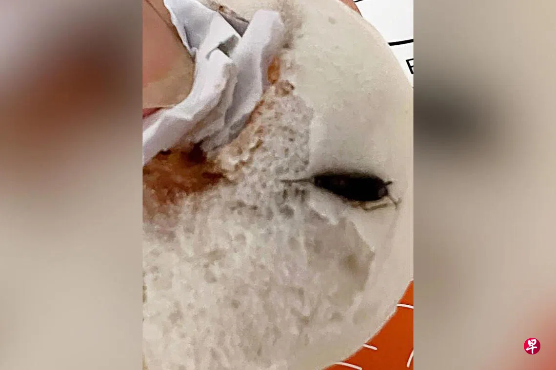 “我撕开包子的纸,准备享用叉烧包时,先看到的不是叉烧肉馅,而是一只嵌在包子底部的蟑螂。我震惊又恶心,剩下的包子我们也不敢吃了。”