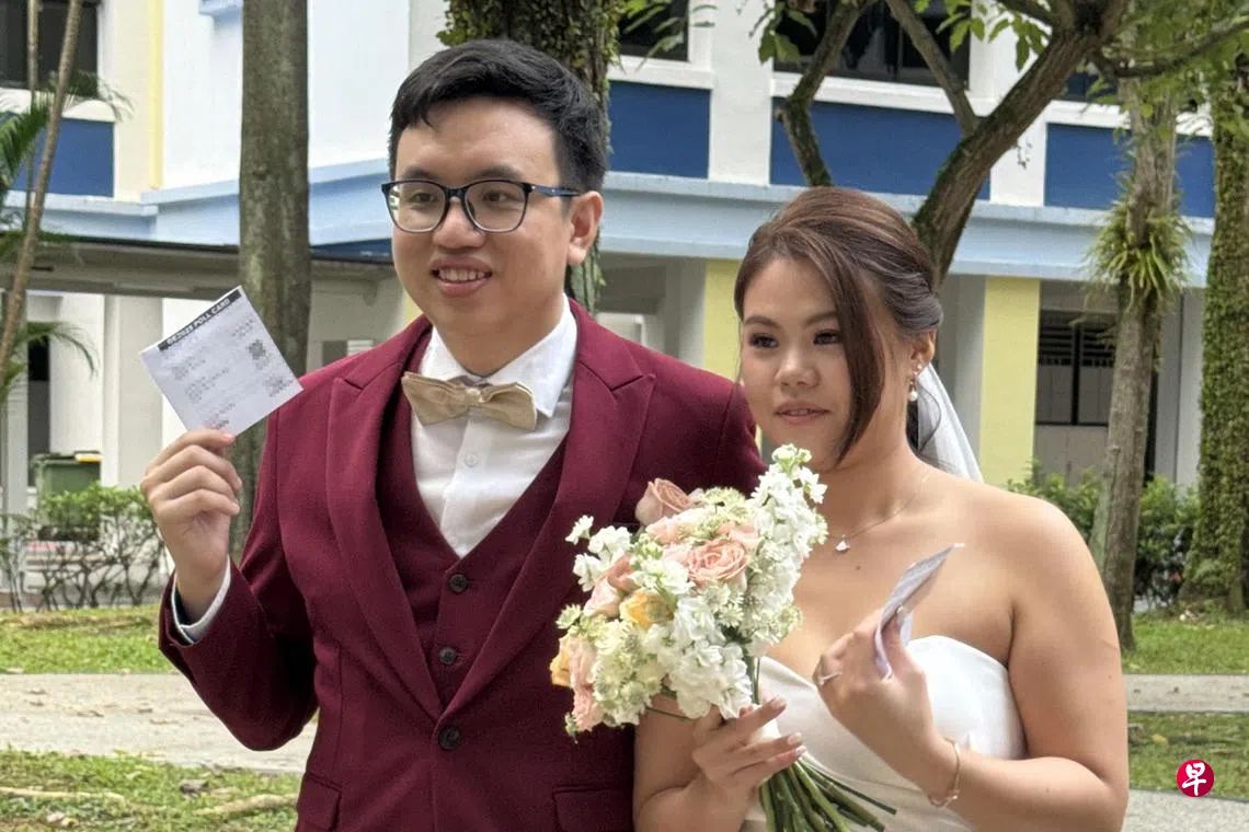 她受访时说,结婚日子早在去年就定下来,却没想到“准准”遇上投票日。不过身为新加坡的一分子,即使终身大事也要履行这重要的国民义务、行使投票权。如同在一天内完成两件“大事”,新娘难掩喜悦地说: “这也让我们这一天更为特别、更富有意义、更值得纪念。”