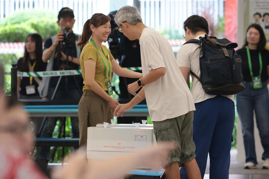 国务资政李显龙早上到德义小学投票站视察投票情况后,在接近中午时分和夫人何晶到克信女中投票。他投票时身着便装,从早前的白衣更换成黄格衬衫的便衣。克信女中投票站属于丹戎巴葛集选区。