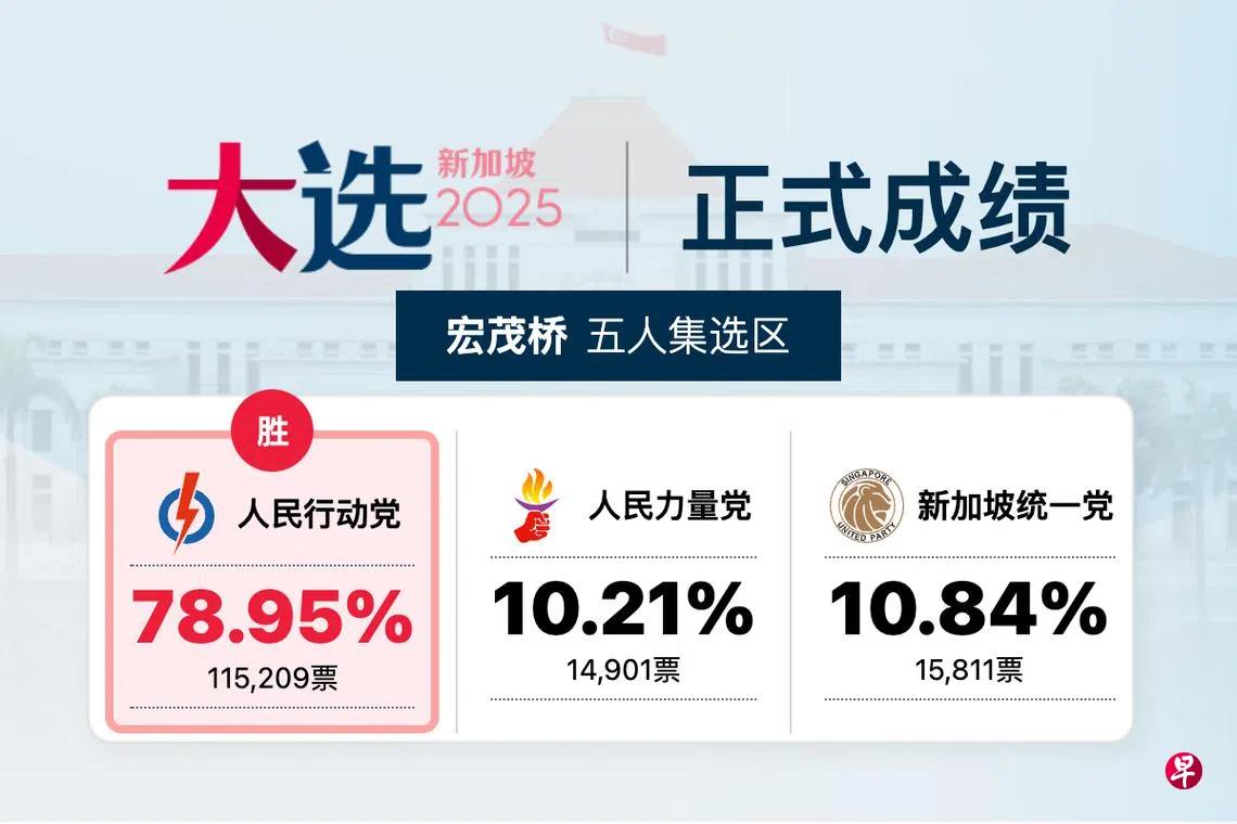 人民行动党宏茂桥集选区候选人李显龙、娜蒂雅、杰乐·大卫、赖添发和刘洁敏(Jasmin Lau),以78.95%的得票率,击败新加坡统一党(10.84%)和人民力量党(10.21%)。