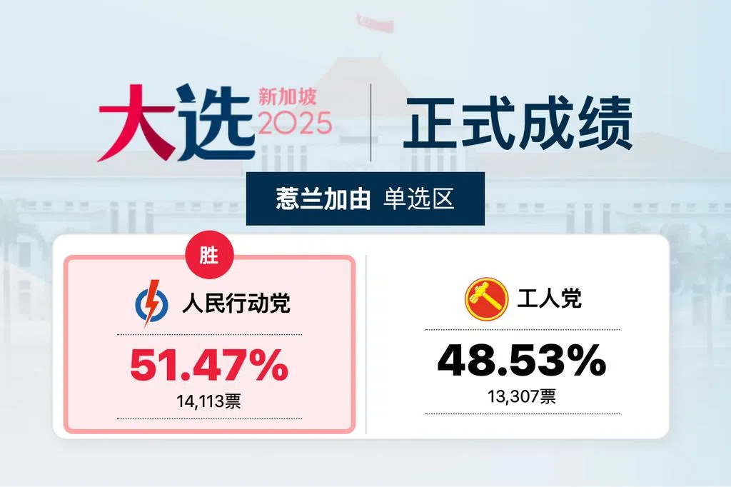 新加坡选举局星期天(5月4日)凌晨公布的正式计票结果显示,得票率最高的落选反对党参选人,分别是工人党的惹兰加由区参选人刘宇扬,以及工人党的淡滨尼集选区竞选团队,得票率分别为48.53%和47.37%。