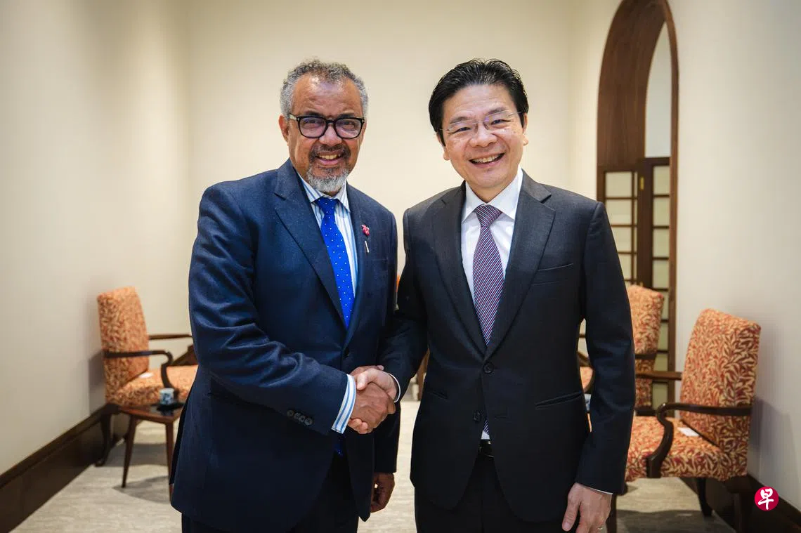 黄循财总理与到访新加坡的世界卫生组织总干事谭德塞会面,两人就当前急迫的全球卫生挑战交换意见,并探讨各国能如何与世卫组织合作应对这些议题。