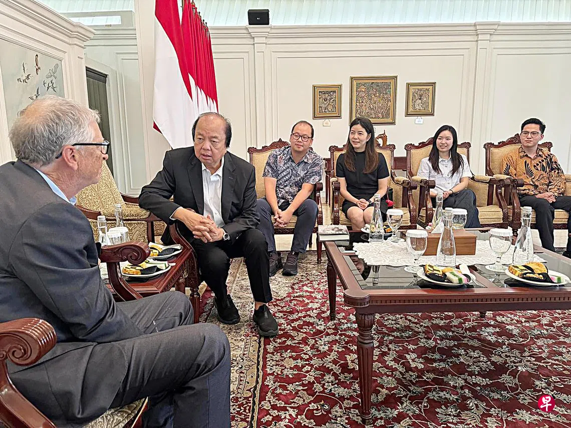 比尔·盖茨到我国逗留两天后,星期三(7日)离境前往印尼,与总统普拉博沃及20名政商界人士会面,其中一名出席者是印尼国信集团(Mayapada Group)创办人翁俊民。